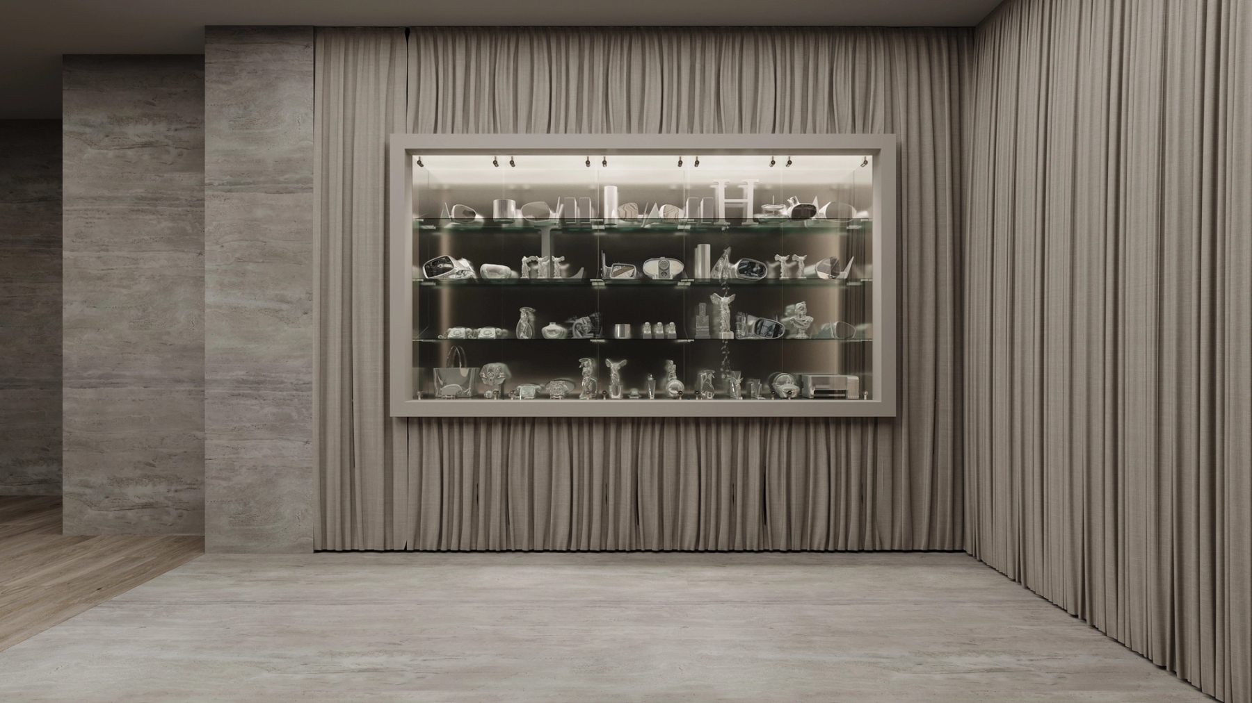 We combined this collection with a vitrine displaying objects that inspired me, covered in a silver finish. The conversation around "Transformism" continues throughout all of my work.