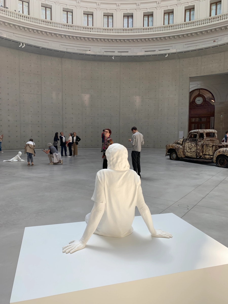 The current collections presented at the Bourse de Commerce seem to pulverize time, distilling it the moment we step into the rotonde on the ground floor. With Charles Ray holding a large section of the exhibition, it is no wonder the lack of temporality feels intrinsic throughout the museum. The artists works effectively bounce off each other in concept; from Roni Horn and Felix Gonzalez-Torres' meditative and still room of questioning identity, to that of Dominique Gonzalez-Foerster's room of a looping fever dream of a posessed identity. This room of illusions flows seamlessly into the more tangible hallucinations of Charles Ray's hyperrealistic sculptures, full of nostalgia. Though minimalistic, I left the Bourse de Commerce impressed by the work and curation, and moreover calmed by the experience.