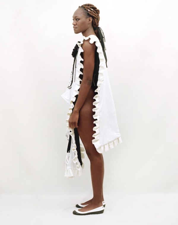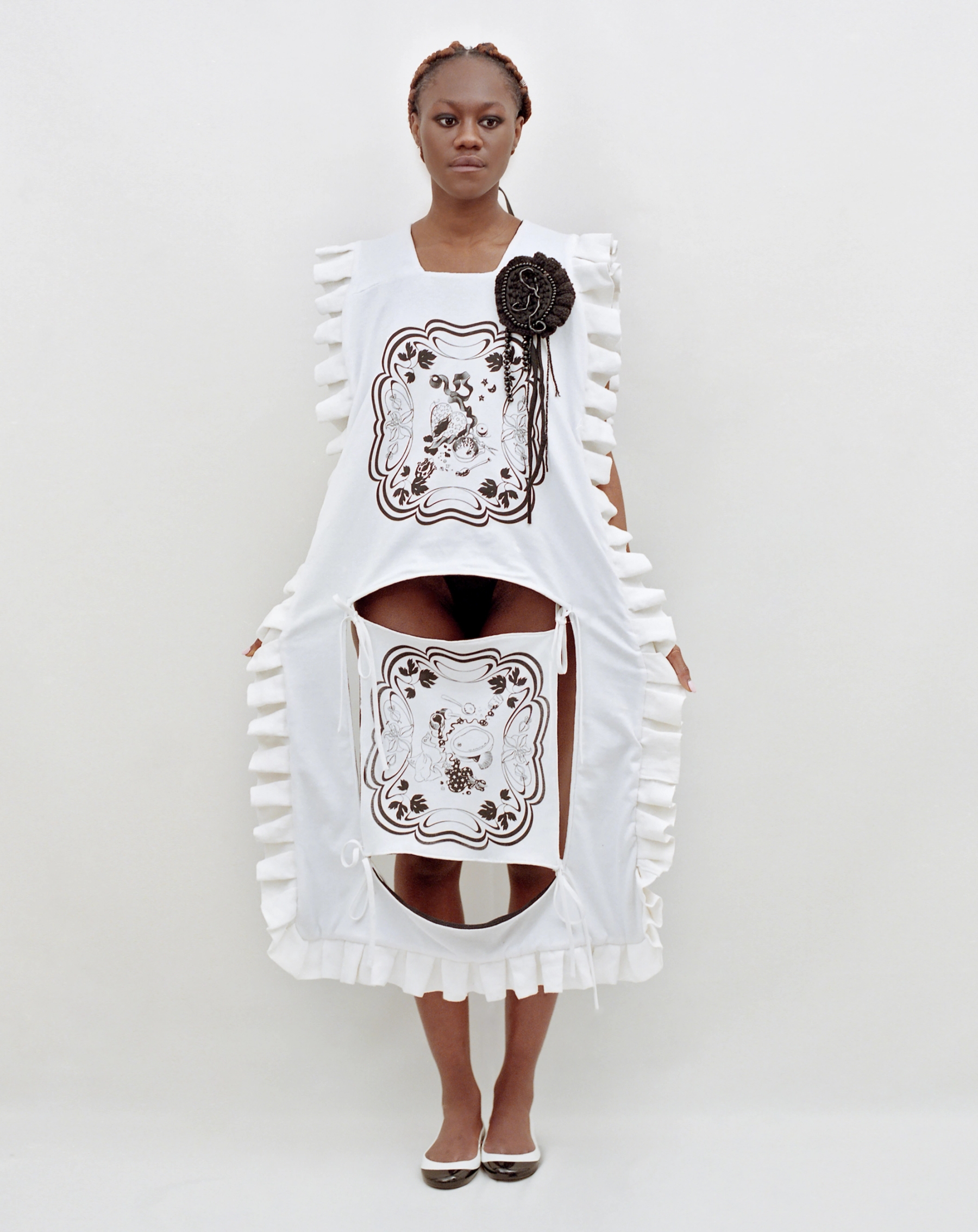 « I’ve been working on this collection for 2 years now. It is a continuation of my Ado-folklo graduation project where I had started to root out the idea of the adolescent construction reappearing in adult life connected to the teenager's room as diary space. This new project is coming from the inspiration of a wardrobe and behavioral idea linked at first with the clichés of the women who have abandoned the idea of finding conventional love. I decided to personify this idea with this «old lady»; ultimately oriented towards herself and the thought of her obscure and mystical marriage with something maybe not human... Historically in France the women not married after a certain age are known under the name of Catherinettes (from St. Catherine). They have a celebration day deeply linked with the universe of fashion and needle craftsmanship. »