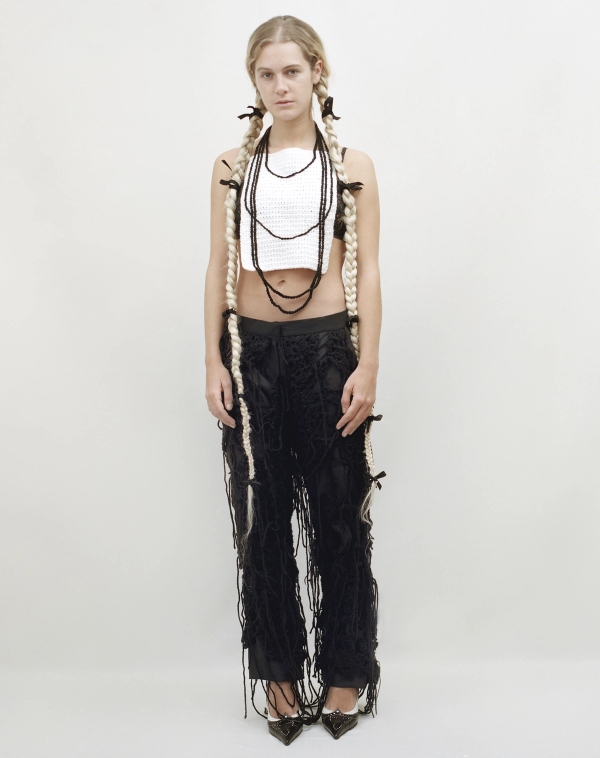 LOOK 5 to 7 : Guillermo wears the necklaces crochet gown / Kauda wears the necklaces crochet top and the spider web pants / Zoé wears the reversible skirt in collaboration with @heller_zoe and the chemisette t-shirt