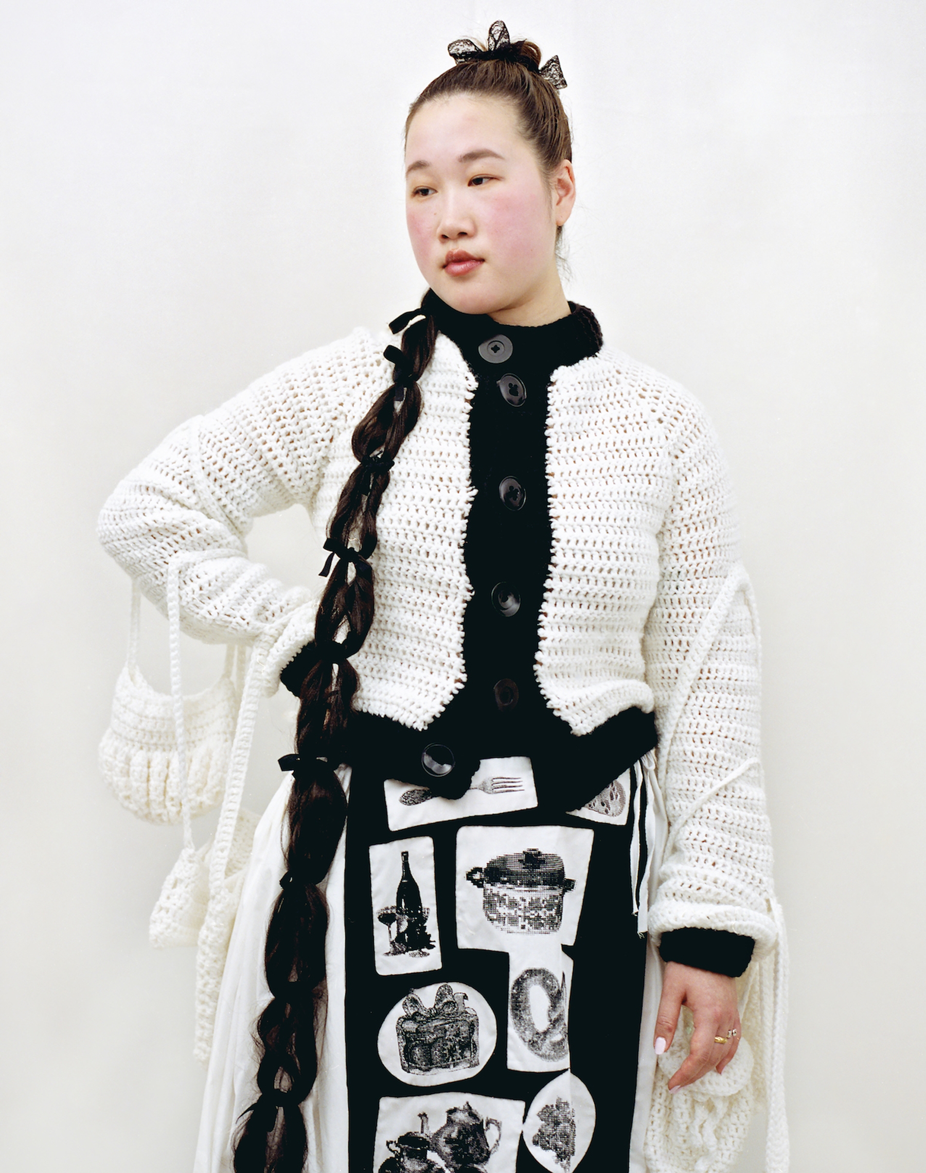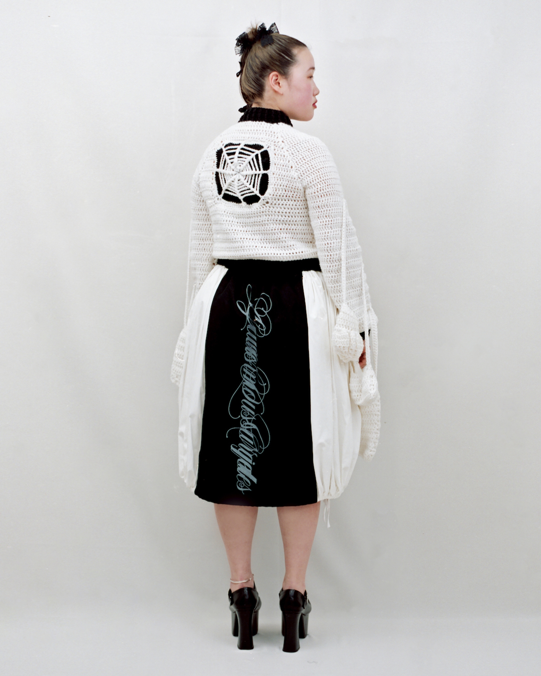 LOOK 8 : Biole wears the grocery skirt in collaboration with @guillermo_orjales and the shopping cardigan