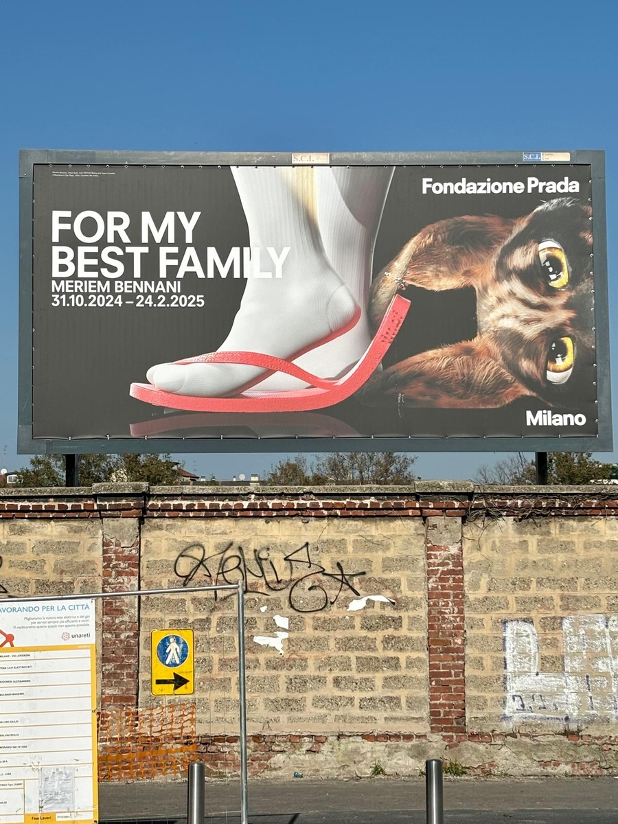 Meriem Bennani’s “For My Best Family” is a playful, heartfelt expansion to Fondazione Prada’s glamorous cultural sphere. Featuring pneumatically powered flip-flops, a jackal-bear romance, and the voices of her loved ones, Bennani’s work is both imaginative and grounded. Alongside the animated film, “For Aicha,” her Milan exhibition includes the sound installation, “Sole Crushing,” composed by music producer, Cheb Runner (Reda Senhaji).