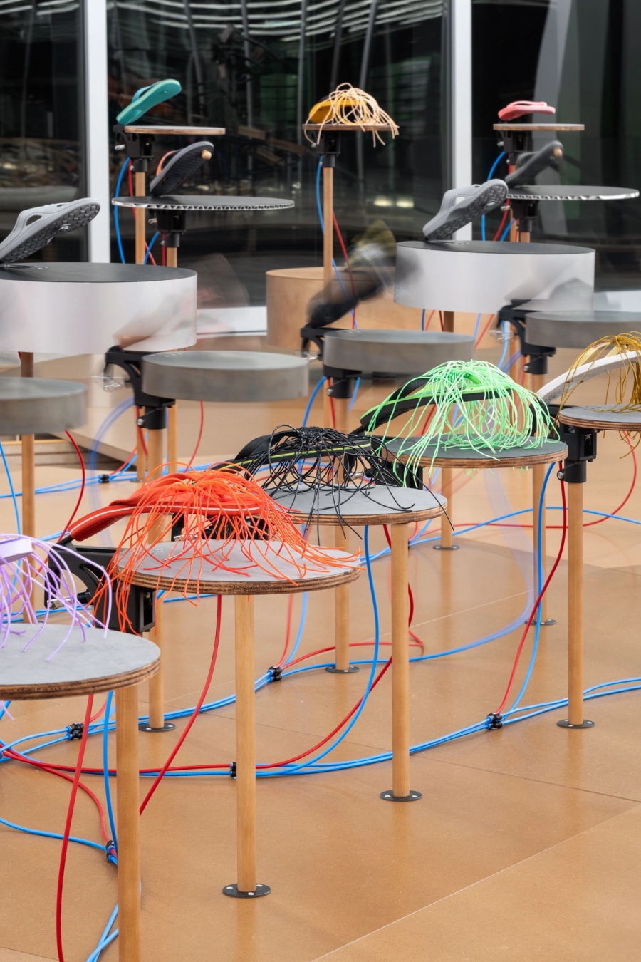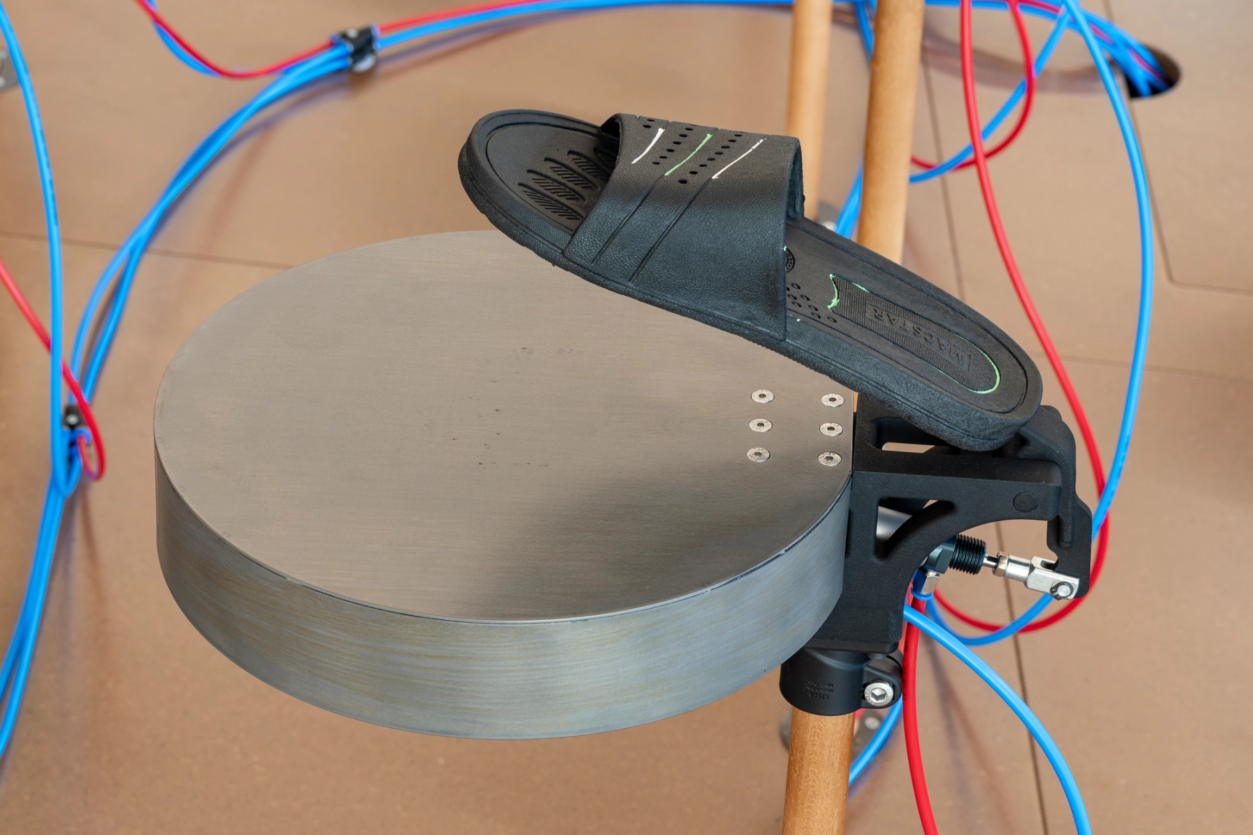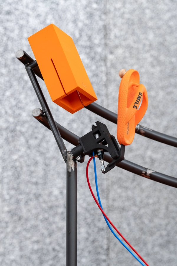 We could take normal musical instruments and have flip flops play them, but it wouldn’t have sounded better. We had to find some acoustically interesting system that, when in contact with flip flops, could create powerful sounds.