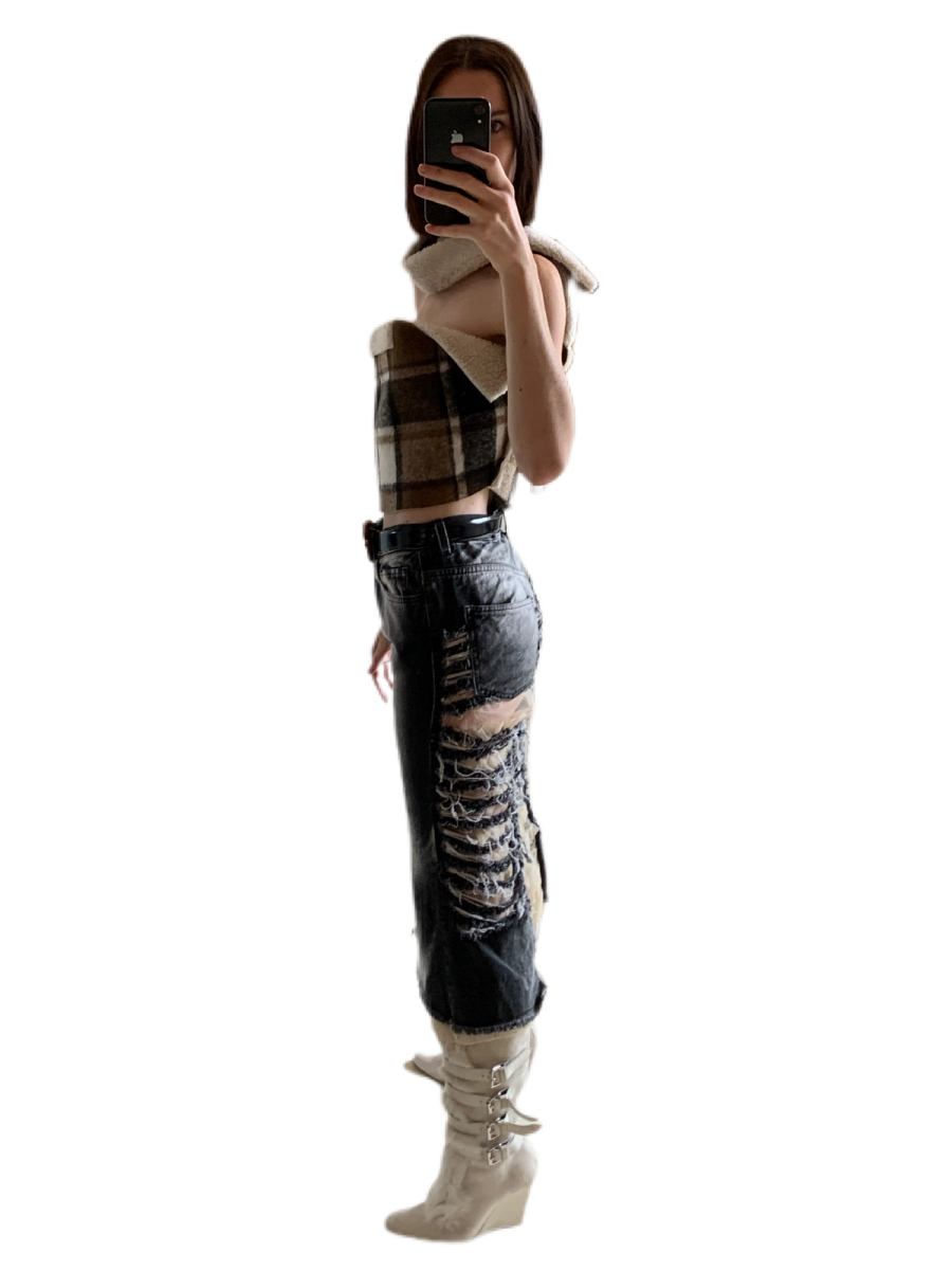 Left: top mock up NAM N’GUYEN, Jacket JEAN PAUL GAULTIER, leggings VINTAGE, boots HELMUT LANG vintage / Right: top NATACHA VORANGER for REBIRTH STUDIO @aboutyou, skirt VINTAGE, boots HELMUT LANG vintage