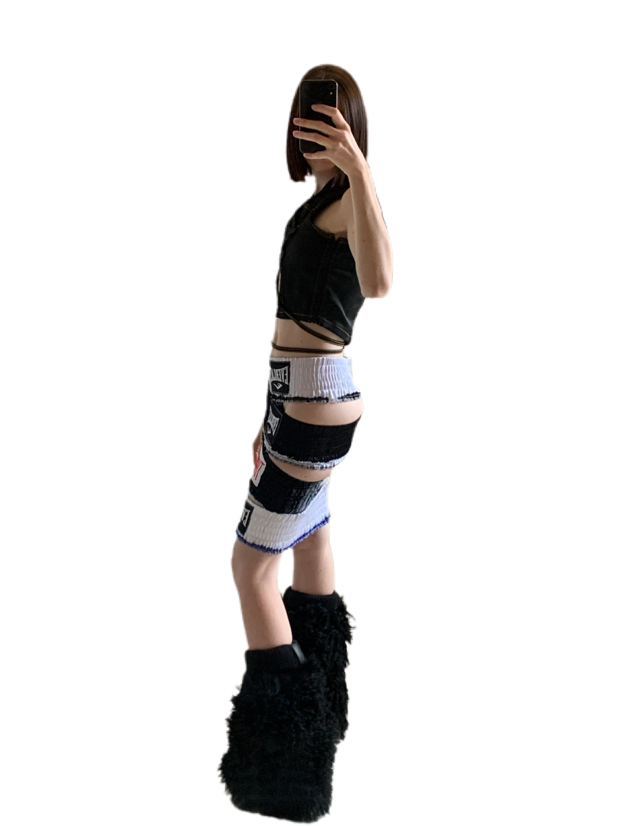 latex top ANOUSHA MOHTASHAMI, skirt NATACHA VORANGER for REBIRTH STUDIO @aboutyou, boots DOLCE&GABBANA vintage
