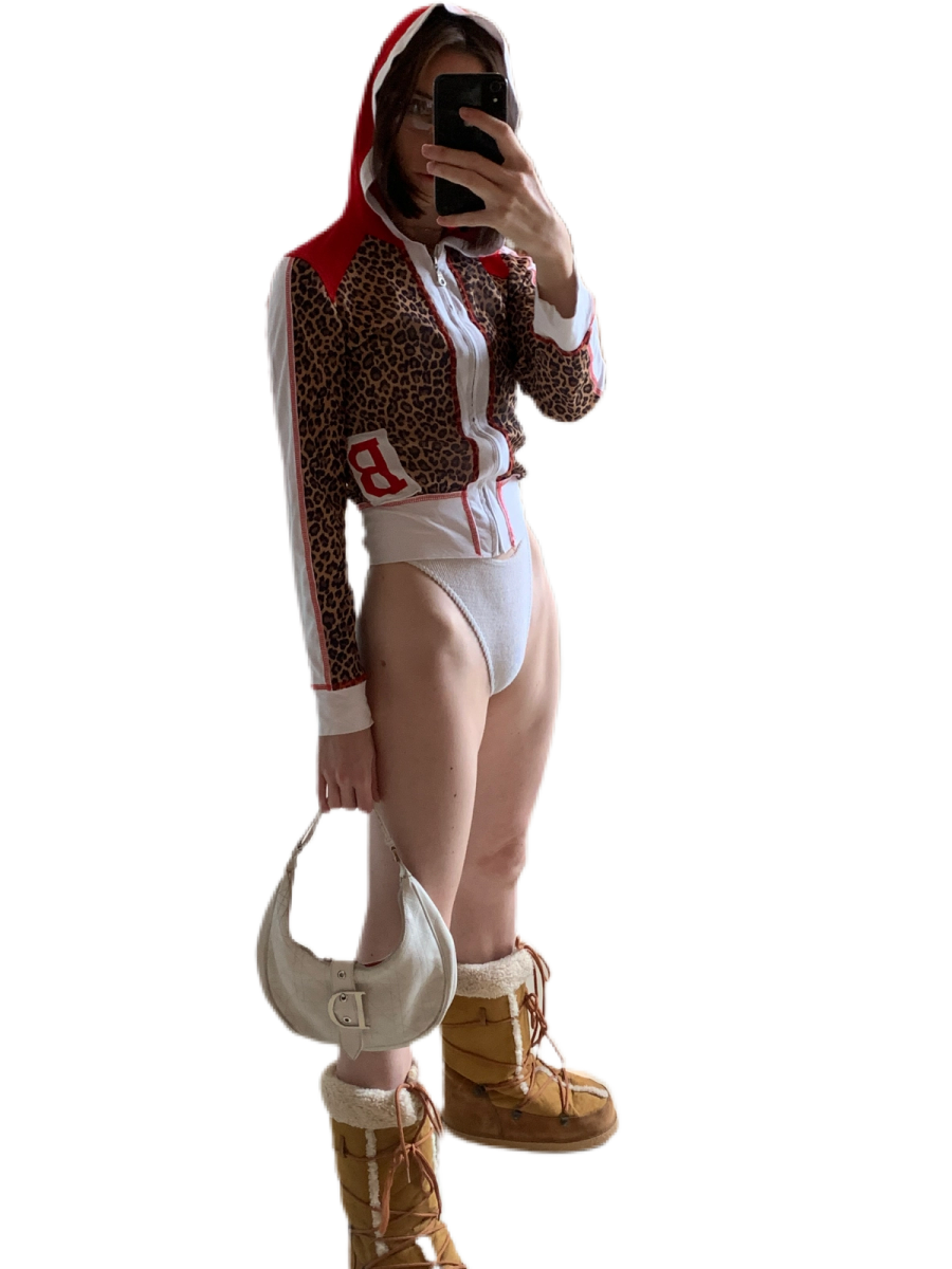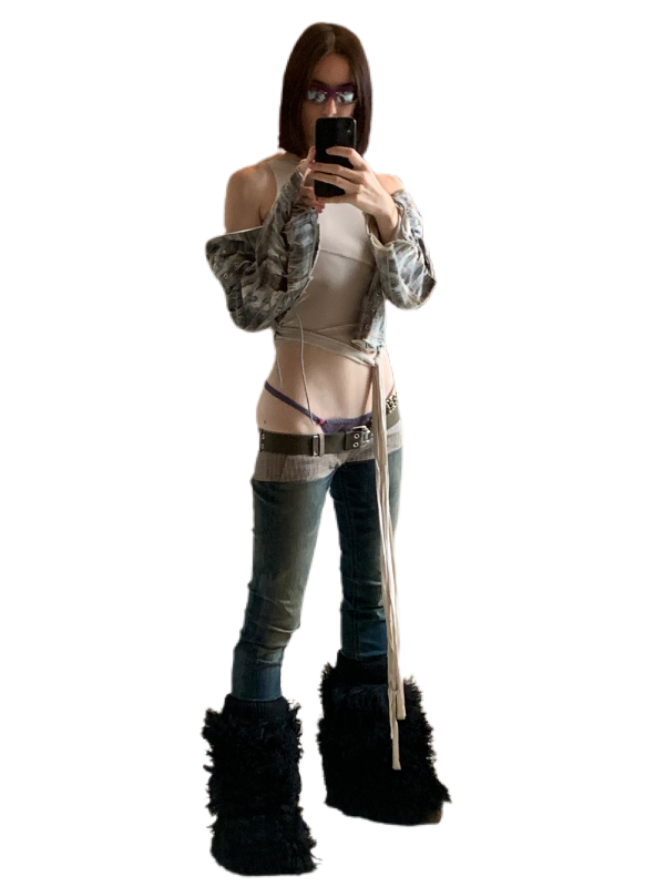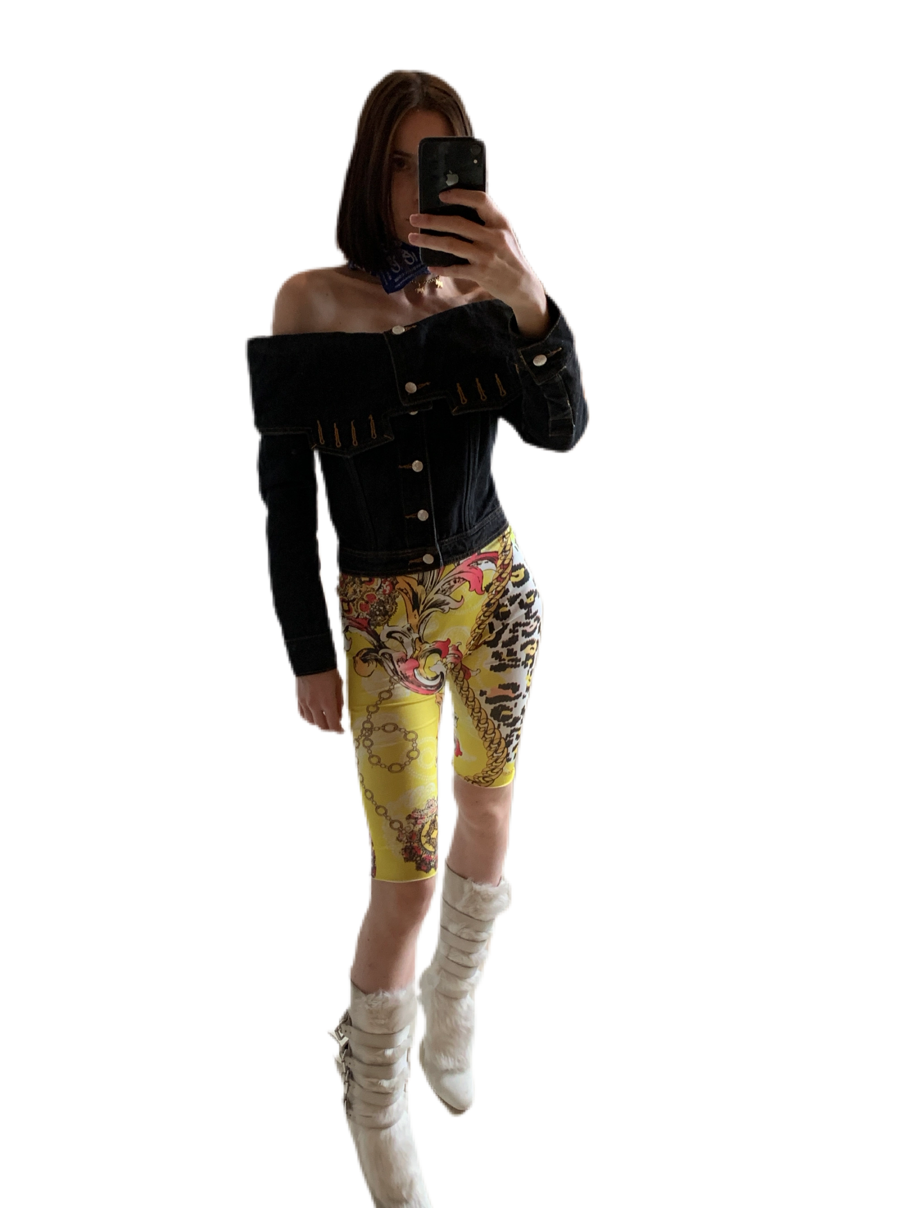 lingerie set PRADA vintage, mini jacket NATACHA VORANGER for REBIRTH STUDIO @aboutyou, leg warmer NATACHA VORANGER for REBIRTH STUDIO @aboutyou, boots DOLCE&GABBANA vintage, sunglasses GIANFRANCO FERRE vintage