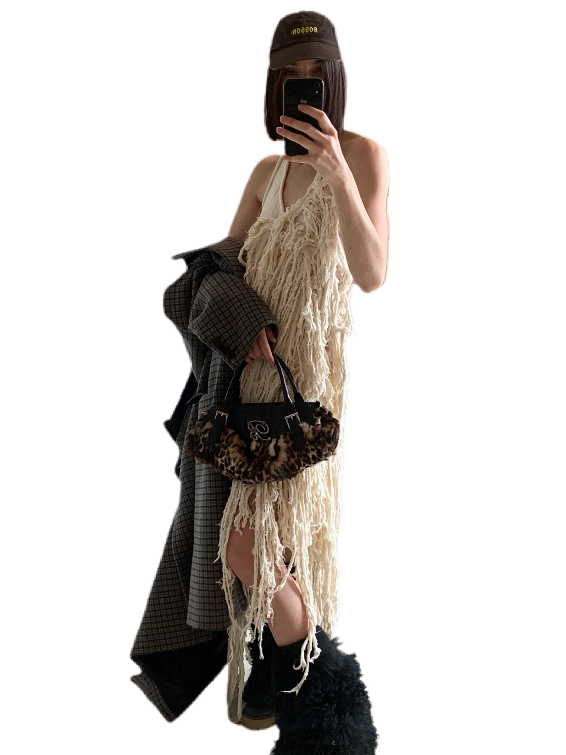 dress OTTOLINGER, coat BALENCIAGA, boots DOLCE&GABBANA vintage, bag BLUMARINE vintage, cap VINTAGE