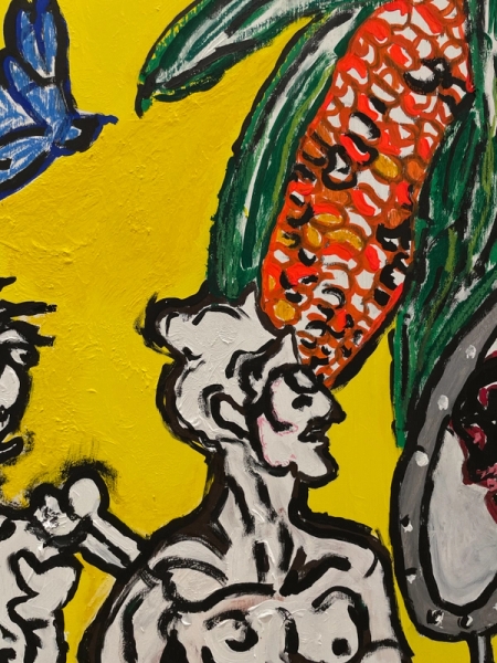 Duplicate Magic: a fabulous little astronaut named Timothy stands outside these doors and he’s just a kid, but naiveté has prepared him for everything. In the adjacent room, an old witch-doctor named Lord gazes on without judgment, but without empathy, also an allegory of creative exploration.